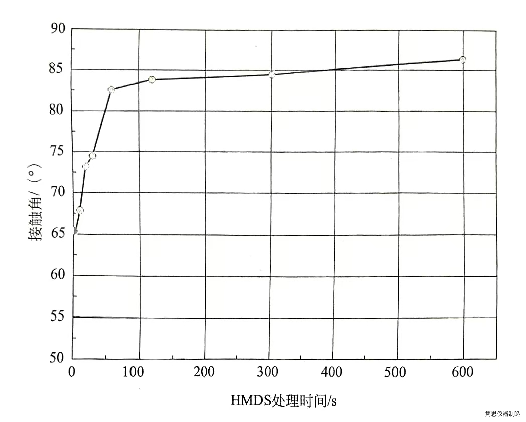图2:HMDS处理时间与接触角的关系(处理温度110℃)